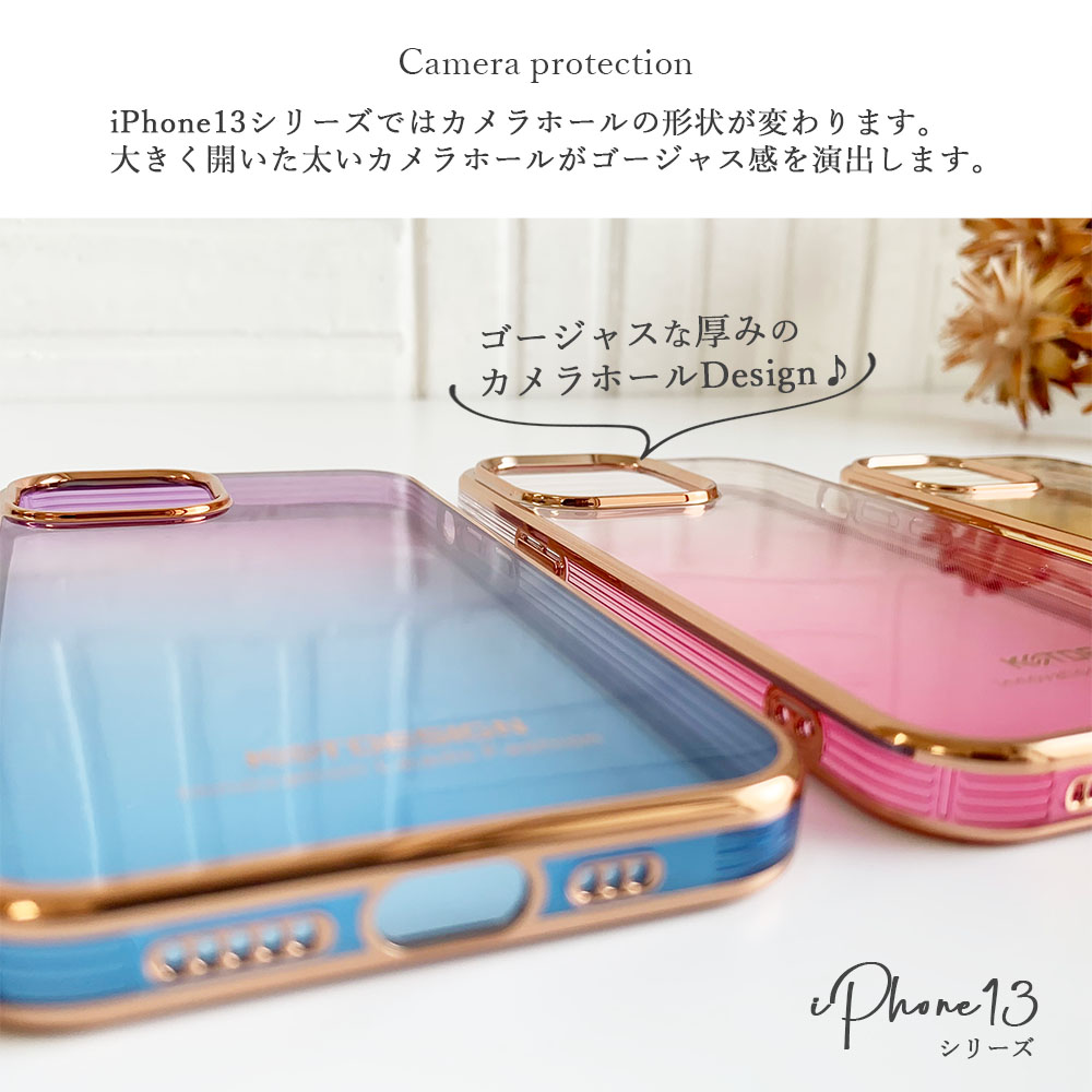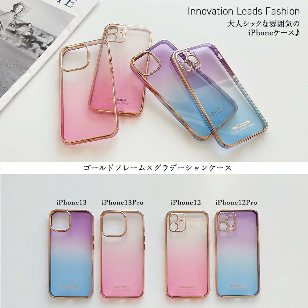 ■商品コメント iPhone13 Pro mini iPhone13 ケース スマホケース 透明 レインボー 超薄型 韓国 カメラ保護 グラデーション おしゃれ ファッション グラデーション&ゴールドフレームの優美なDesign♪