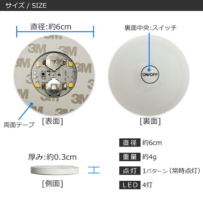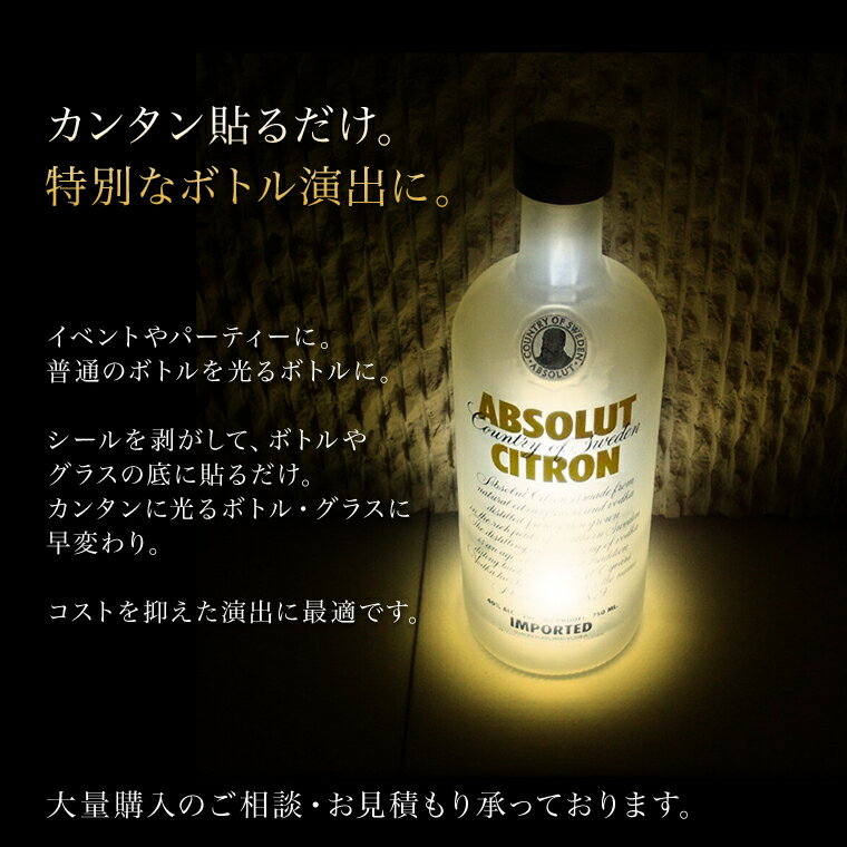 光る ボトル ステッカー 6cm 4LED コースター 暖色点灯 ウォームホワイト ライトアップ ディスプレイ ハーバリウム ステッカー シール 貼り付け 底 ボトル底 お酒 グラス コップ シャンパン ワイン 結婚式 ウエディング バー クラブ おしゃれ キャンプ お祭り